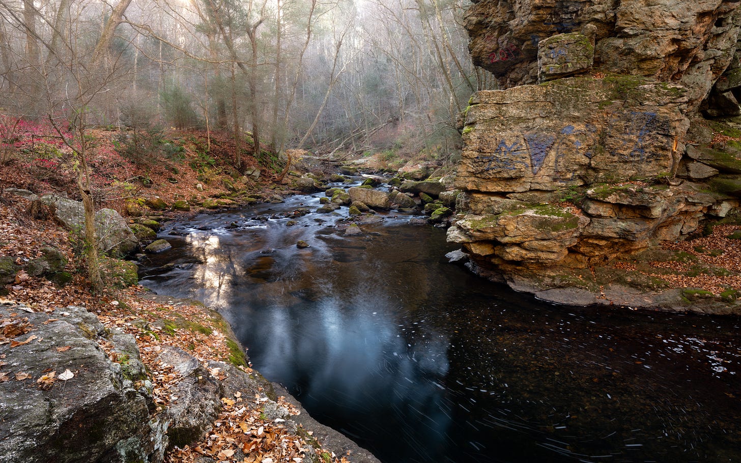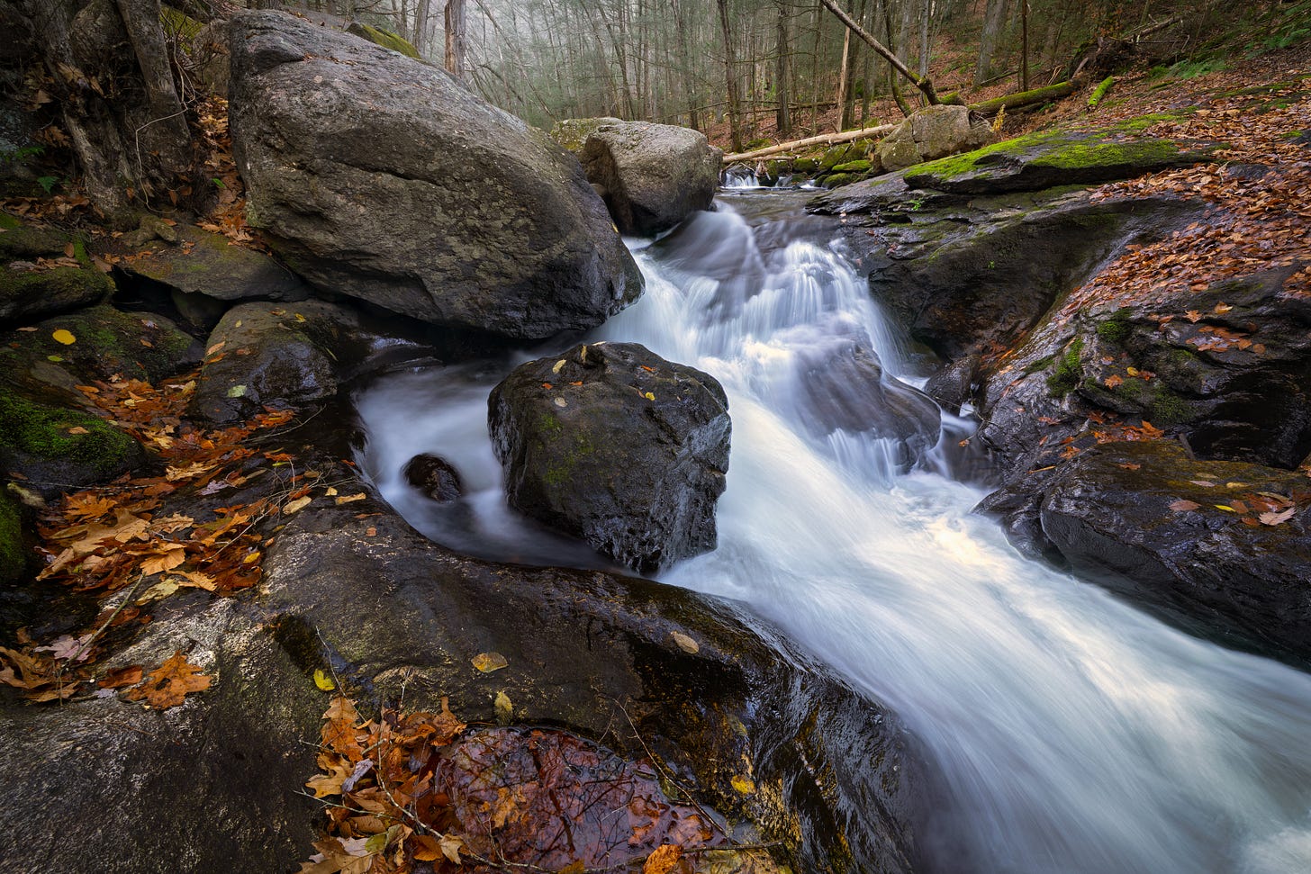 Fall slipped through my fingers this year. For reasons I’d rather not get into, the season got away from me. One of the places I always return to in autumn is Cotton Hollow Nature Preserve in Glastonbury, Connecticut, a lazy brook, a small cascade, all of it tucked into a dense pocket of woods. By the time I finally made it back, it was November.